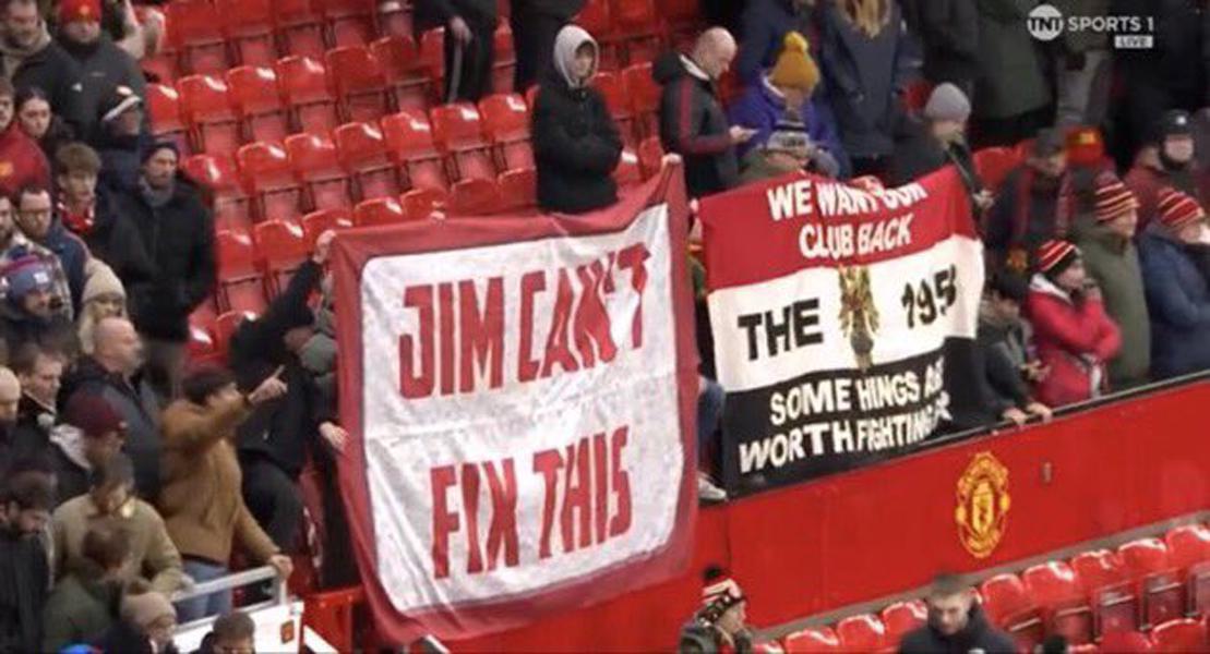 5月与利物浦之战的收费更高,每人可达1499英镑!一些支持者担心,俱乐部为了增加收入,可能会征用他们长期持有的更多位置。在老特拉福德看台上,球迷已经挂上了反拉爵的横幅:「吉姆(拉特克里夫)搞不定。」